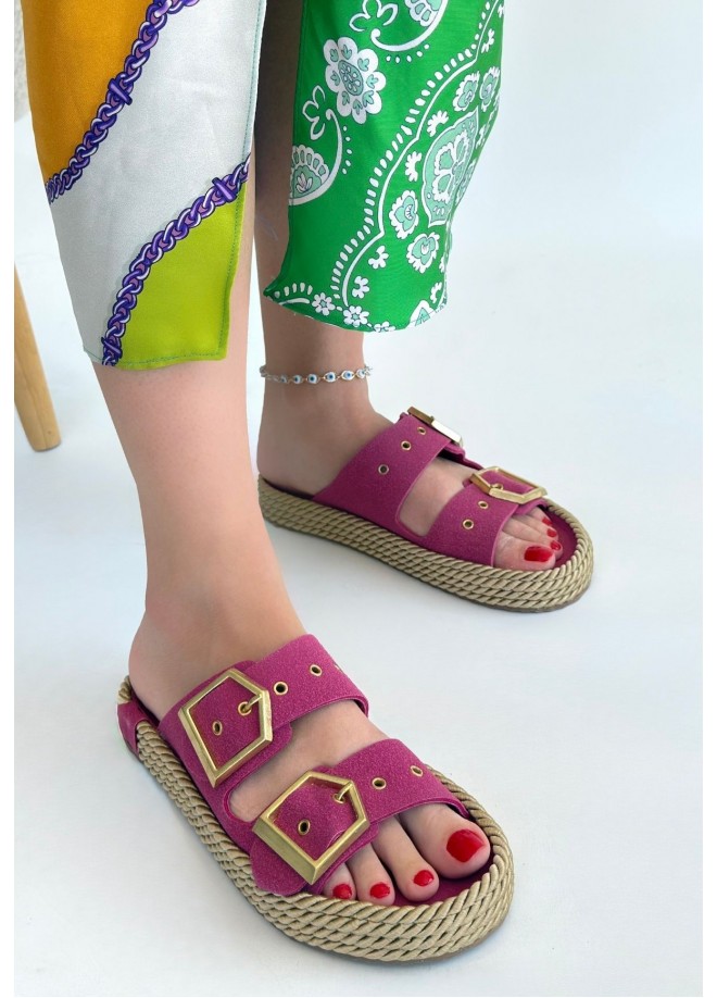 Loera Pemba Nubuk Çift Tokalı Terlik