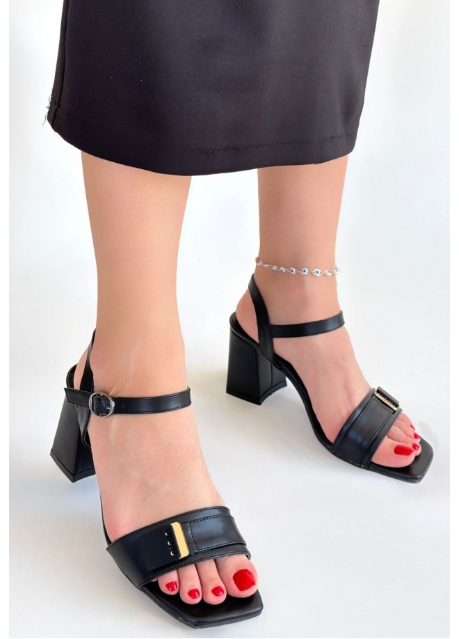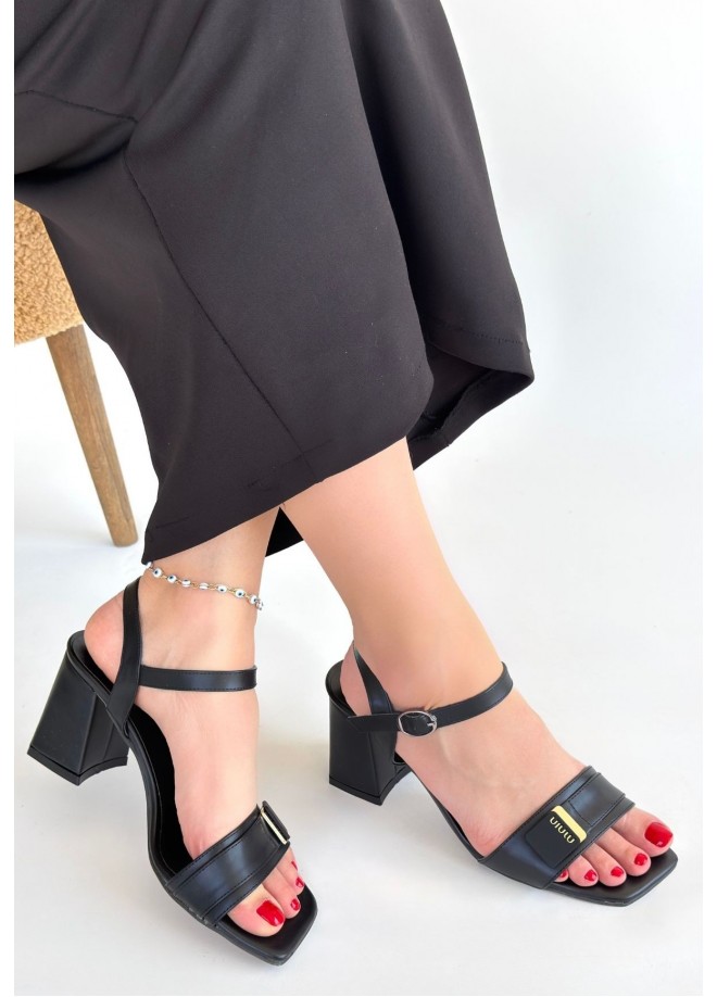 Ruty Siyah Cilt Topuklu Ayakkabı