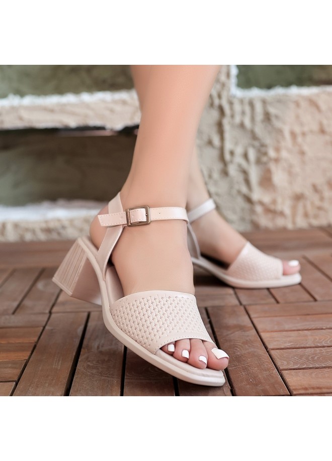 Laera Bej Cilt Topuklu Sandalet