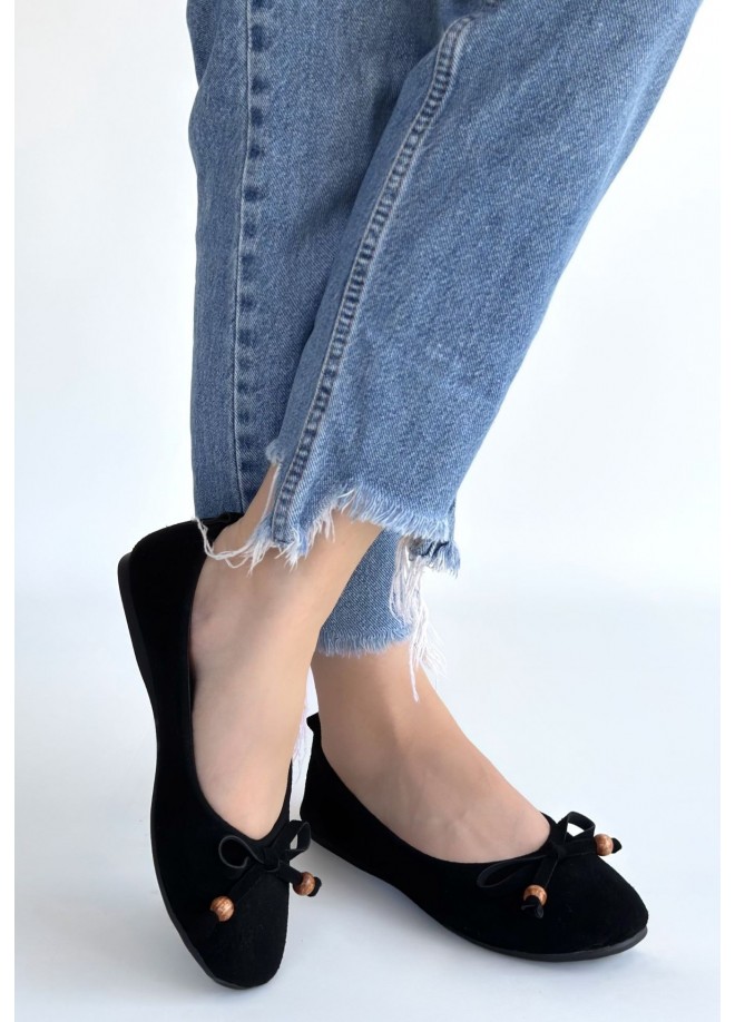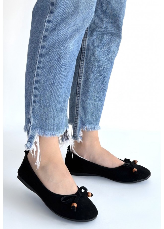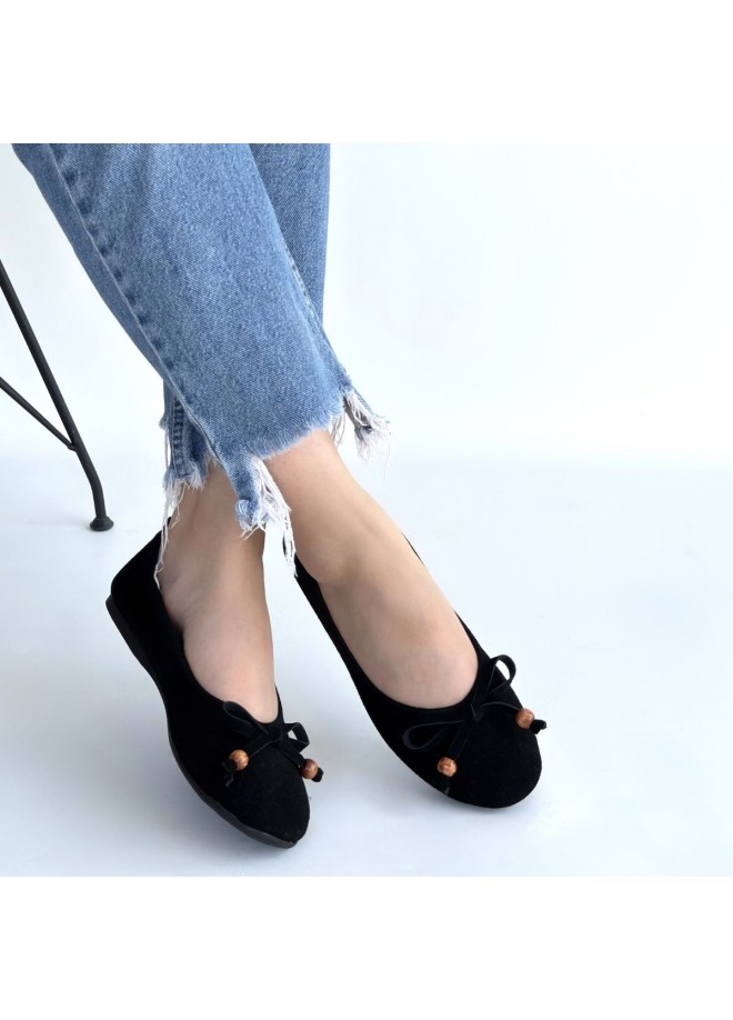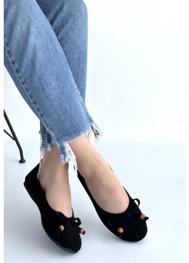 Cear Siyah Deri Tozu Süet Babet Ayakkabı