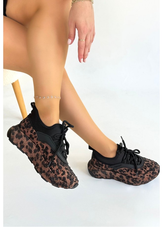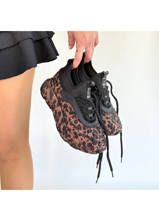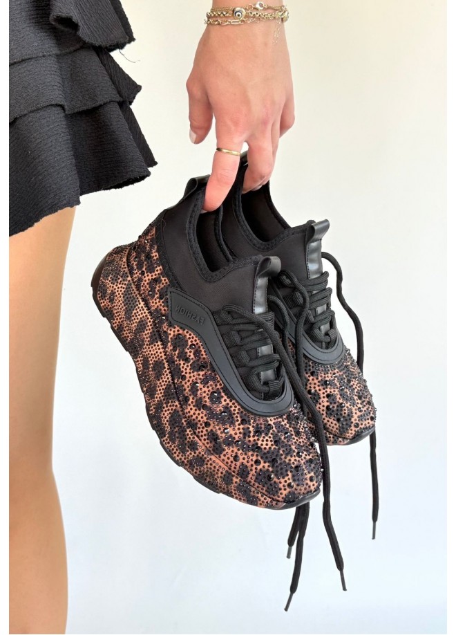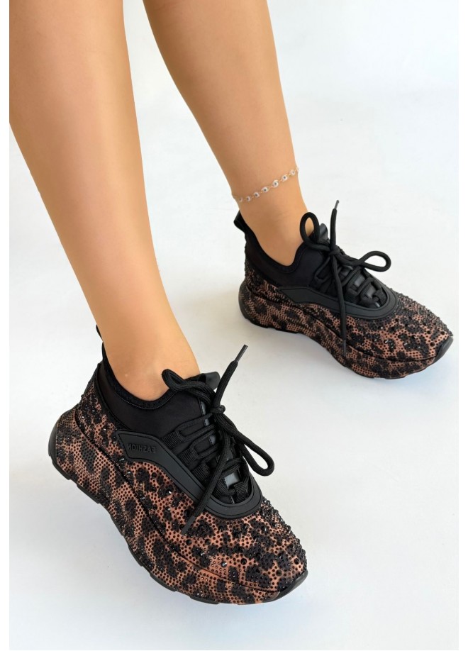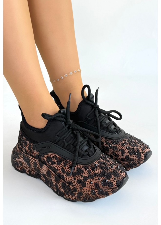 Rimay Kahverengi Cilt Boncuk İşlemeli Spor Ayakkabı