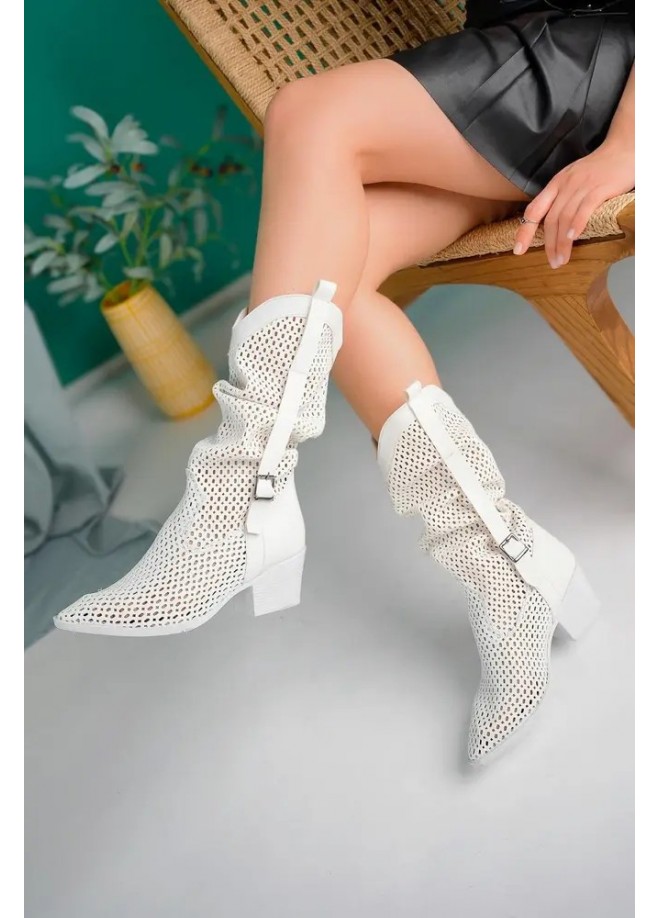 Meria Beyaz Cilt Lazer Kesim Kovboy Topuklu Çizme