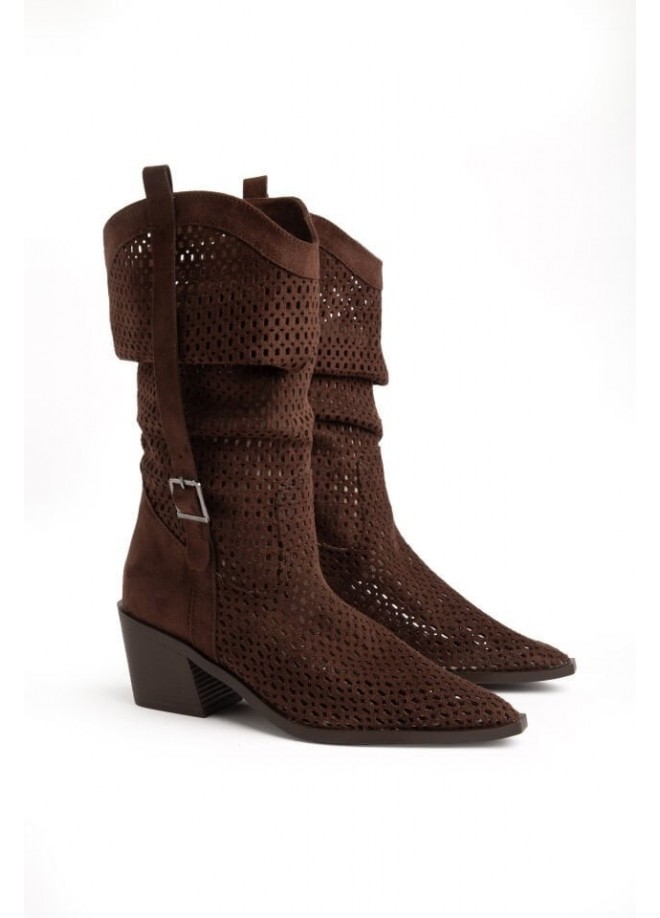 Meria Kahverengi Süet Lazer Kesim Kovboy Topuklu Çizme